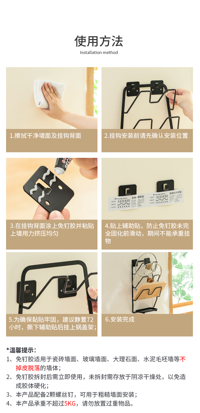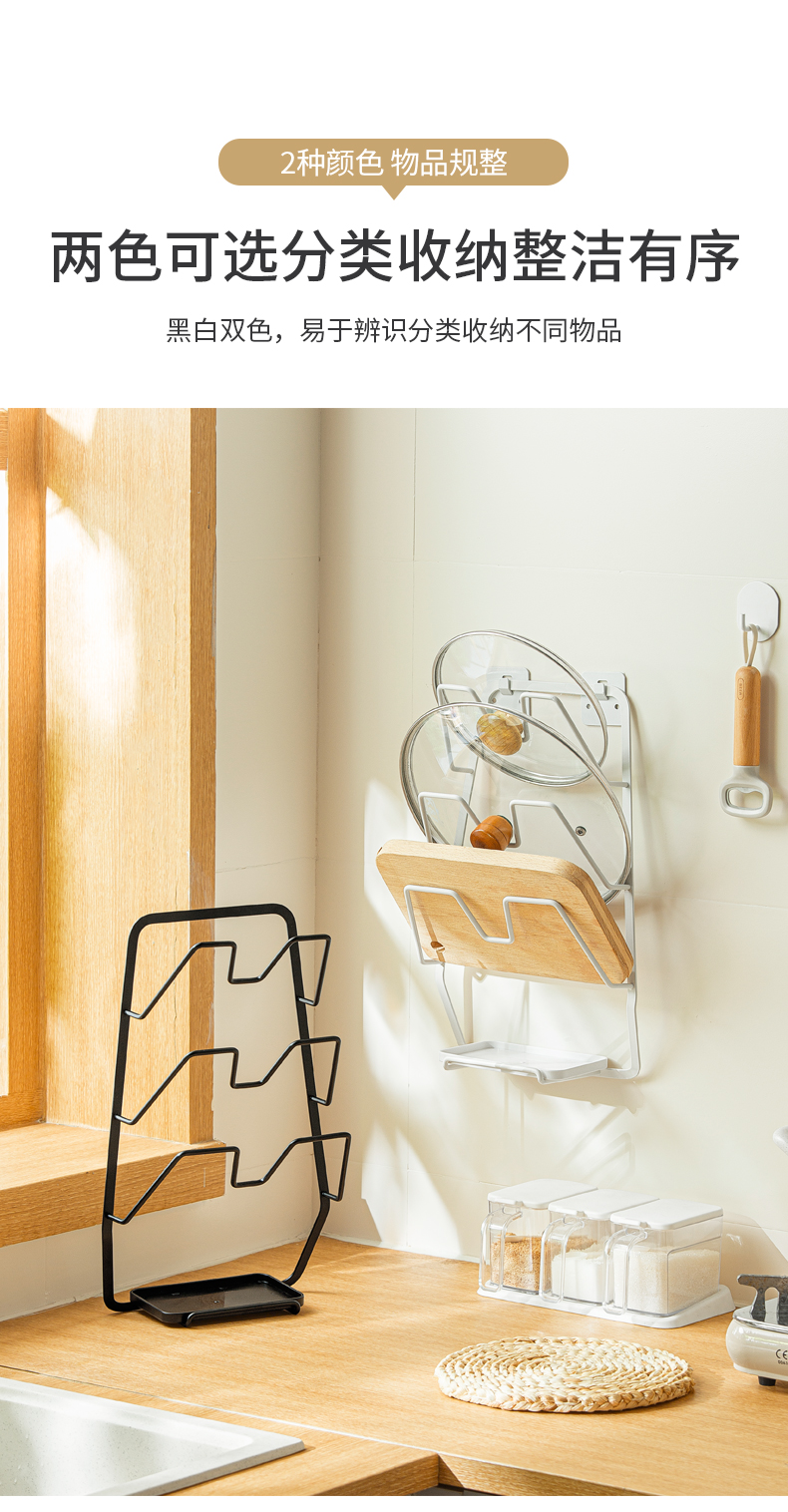 1、壁掛收納:免釘壁掛,拓展廚房收納空間